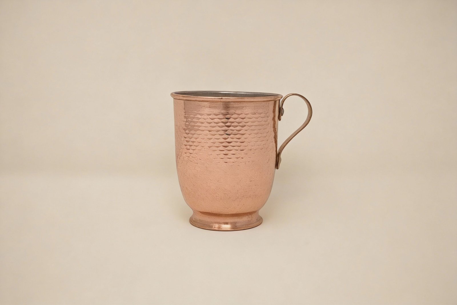 This hand-hammered pure copper mug elevates everyday drinks from Moscow Mules to chilled water with unmatched chill, authentic style, and natural benefits. Crafted from 100% solid copper, its exceptional thermal conductivity chills lips and fingertips instantly (400x faster than glass), keeping beverages frosty longer while boosting carbonation, flavors, and crisp refreshment; overnight water storage adds antimicrobial purification and minerals for better digestion and immunity per Ayurvedic tradition.