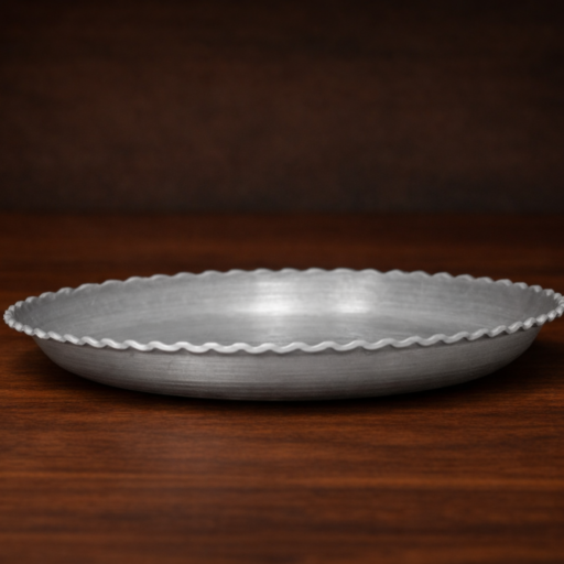 Handmade metal serving plate with a scalloped edge, perfect for presenting fruits, sweets, or as an elegant base for tea sets and spreads.