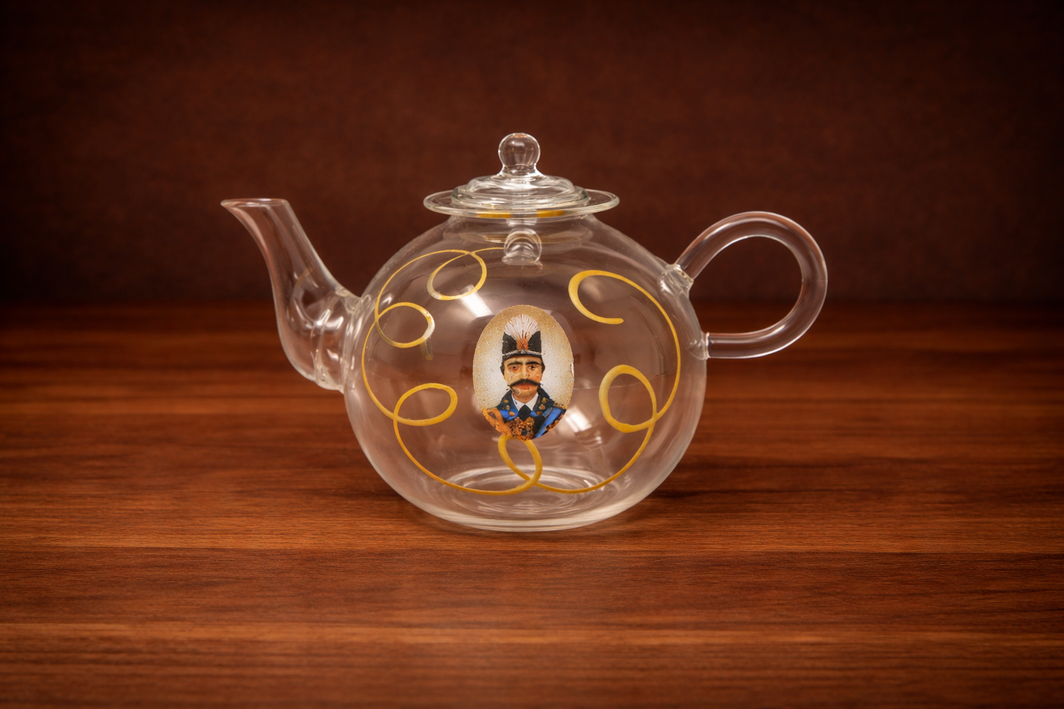 This exquisite Qajar Clear Glass teapot blends historical Persian artistry with modern elegance. Crafted from transparent heat resistant glass, it features delicate hand painted gold scroll patterns. Perfect for brewing and serving tea, the clear glass body allows you to enjoy the beautiful color of your tea as it steeps. Both functional and decorative, this teapot makes a stunning statement on tea trays, dining tables, or display shelves.