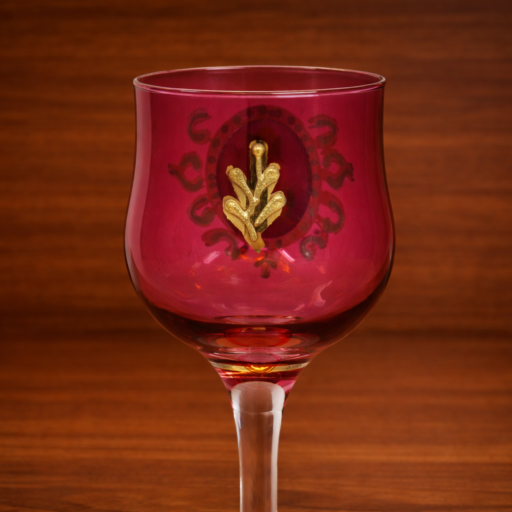 This luxurious Set of 6 Qajar Style Ruby Wine Glasses is inspired by the richness of Persian royal art. Each glass is crafted from deep ruby colored glass and beautifully adorned with hand painted gold scrollwork and classic Qajar era portrait designs, creating a striking blend of culture and elegance. Perfect for serving wine, cocktails, mocktails, or sparkling beverages. Whether used for entertaining or displayed as part of a curated glassware collection, this set brings timeless Persian charm to any table.